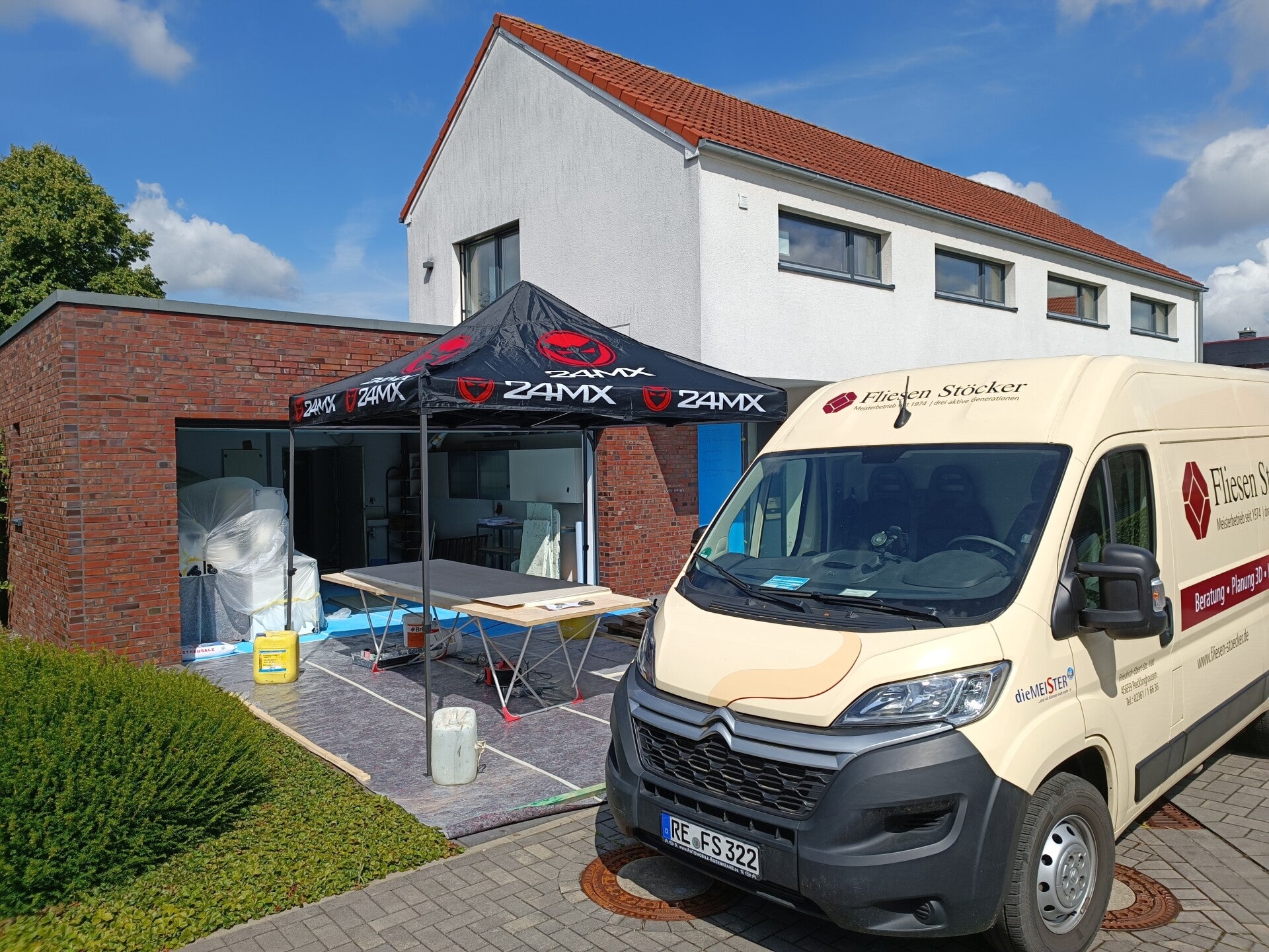 Zwischendurch haben mein Bruder und ich kommplett in Eigenleistung zwei Häuser gebaut, sowie ein Mehrfamilienhaus Baujahr 1904 und ein Mehrfamilienhaus Baujahr 1995, kernsaniert. Von Mauerarbeiten, über Maler, Sanitär, Elektro, Trockenbau, Dachdecker etc. hin, bis natürlich zu den eigentlichen Fliesenarbeiten. Alles unter Anleitung der entsprechenden Meistern oder Gesellen. Dadurch habe ich große Erfahrungen in Fremdgewerken. Ich würde mir natürlich nie anmaßen so viel zu wissen, wie die jeweiligen Meister. Aber dafür habe ich ja die Kontakte, mit denen ich Rücksprache halten kann.
